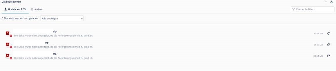 The message "The page was not displayed because the requested unit is too large" when we try to upload large files. |